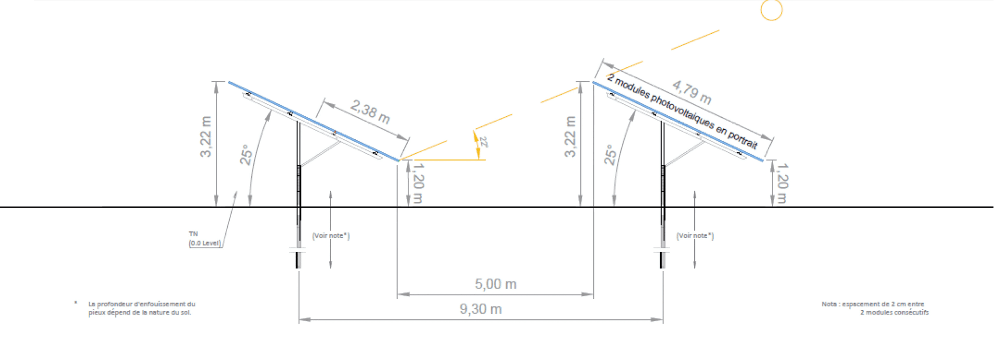 • Des trackers mobiles 2V (2 rangées de modules).